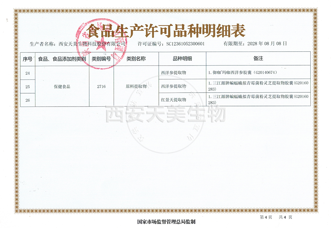 核心技術(shù) 質(zhì)量管理 儀器設(shè)備 認(rèn)證證書 首頁(yè)>研發(fā)/質(zhì)量>認(rèn)證證書 西安天美生物營(yíng)業(yè)執(zhí)照 高企證書 食品生產(chǎn)許可證 食品生產(chǎn)許可證-明細(xì)表4 食品生產(chǎn)許可證_明細(xì)表03 食品生產(chǎn)許可證_明細(xì)表02 食品生產(chǎn)許可證_明細(xì)表01 知識(shí)產(chǎn)權(quán)管理體系認(rèn)證證書 共35條12345下一頁(yè)